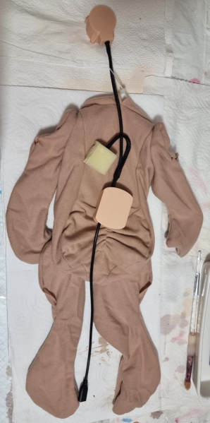 - Insert your fluffing (polyfil) and weighting sack into the lower part of the body.