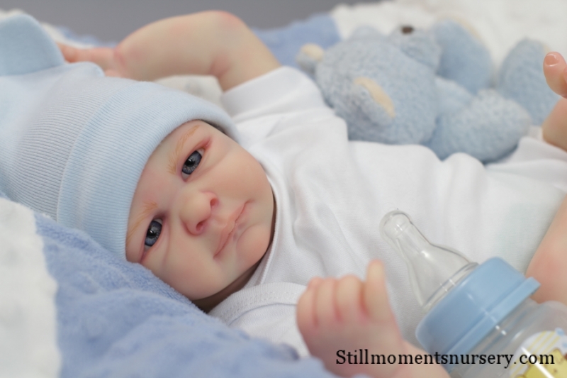 On open eyed babies only high quality polyglass or glass eyes are used, they are specially designed to resemble ultra realistic baby eyes in every detail.