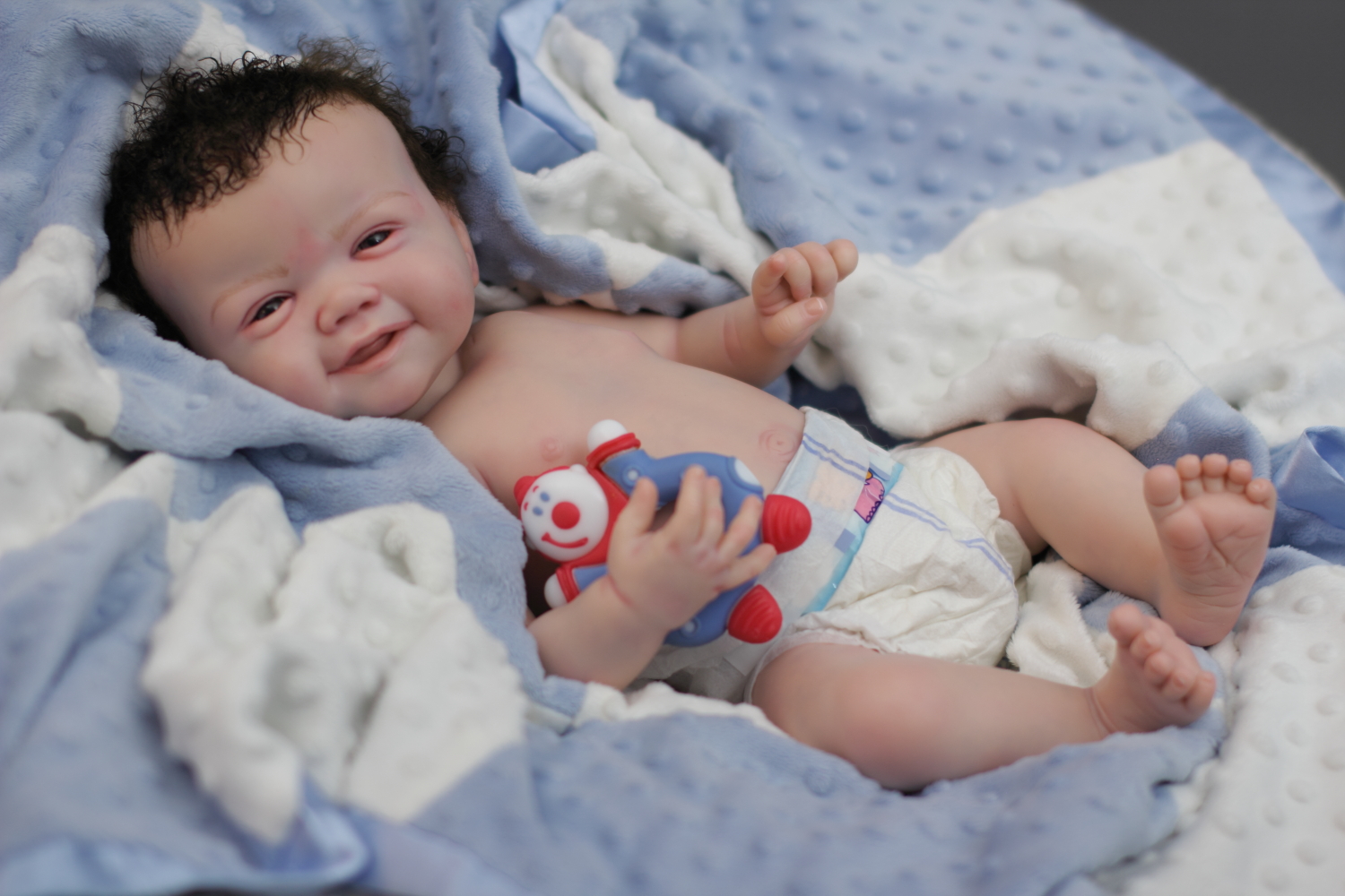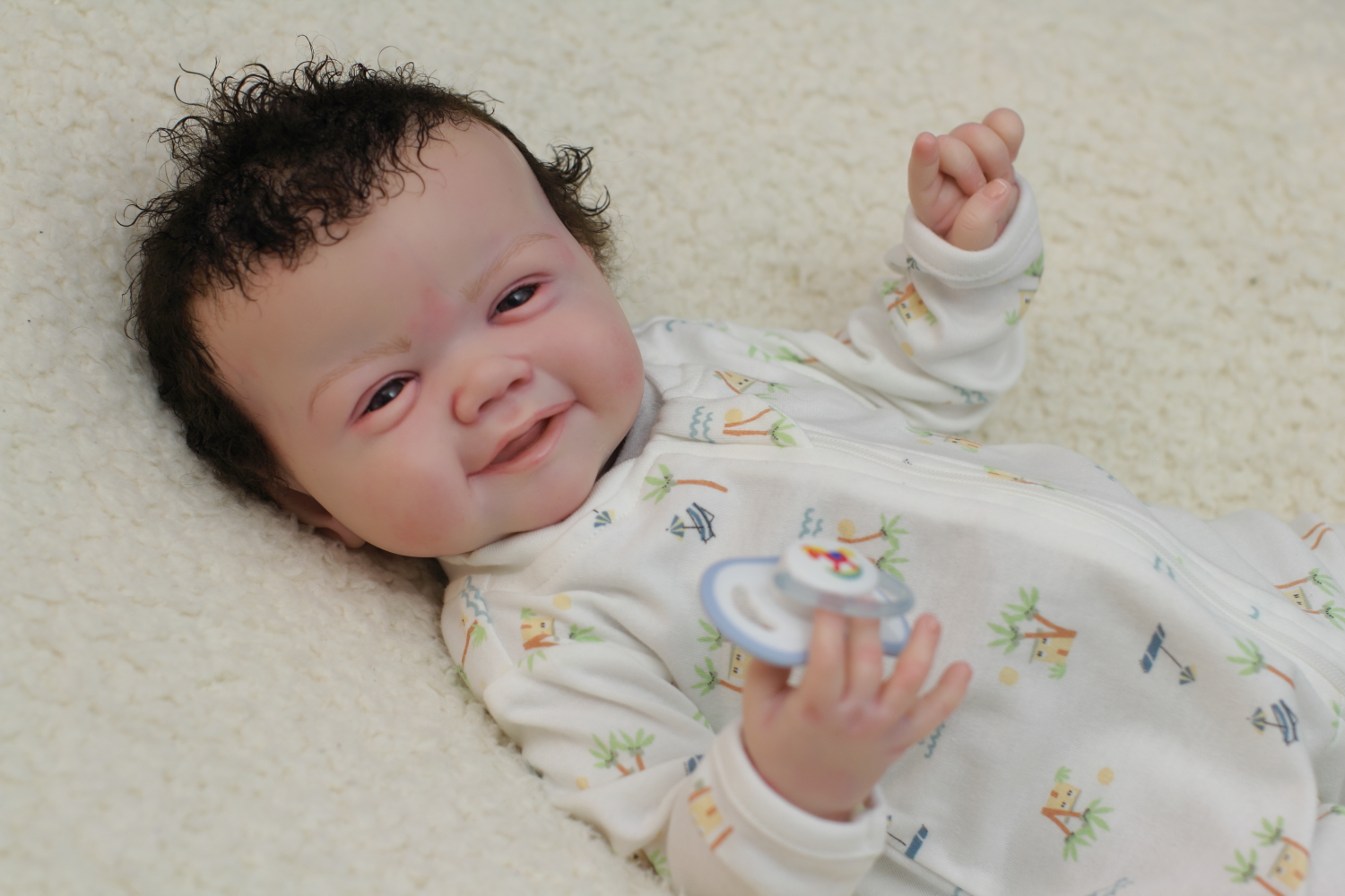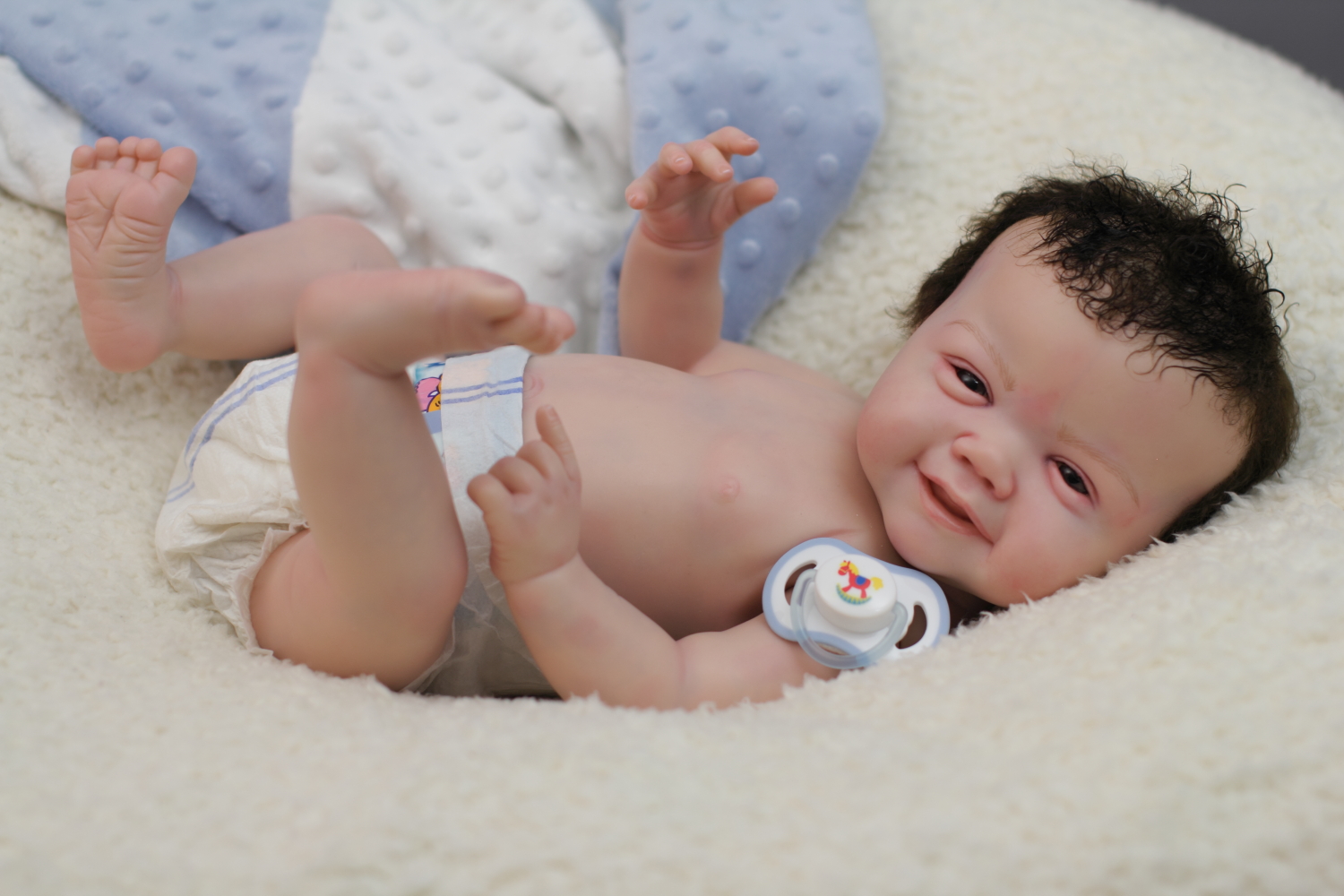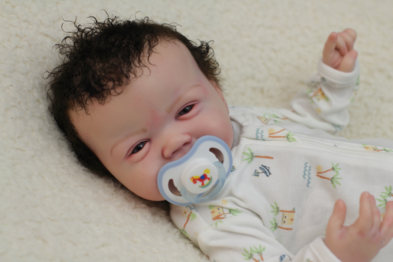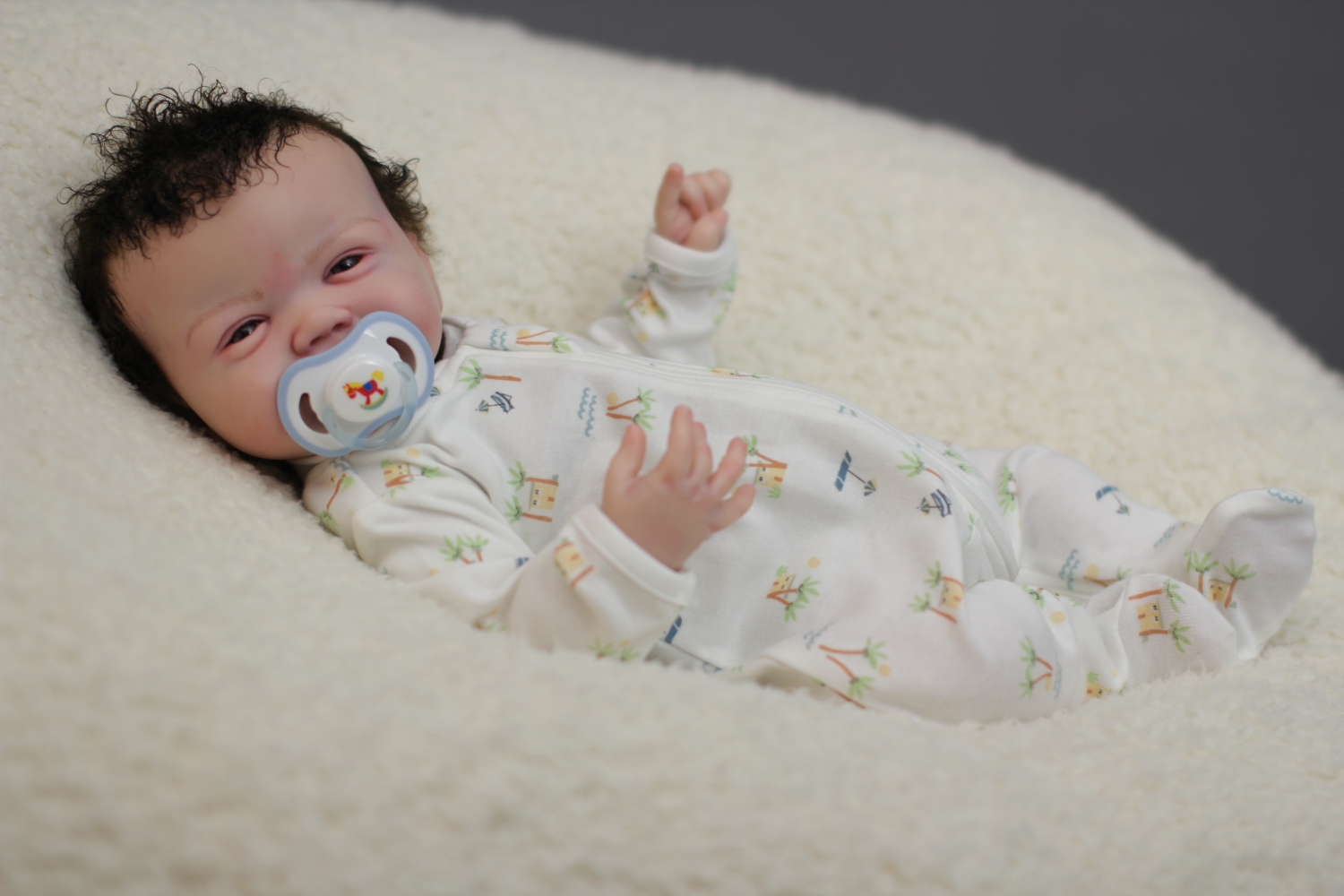 On open eyed babies only high quality polyglass or glass eyes are used, they are specially designed to resemble ultra realistic baby eyes in every detail.
