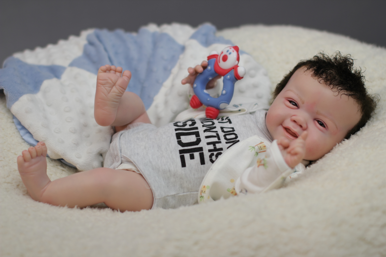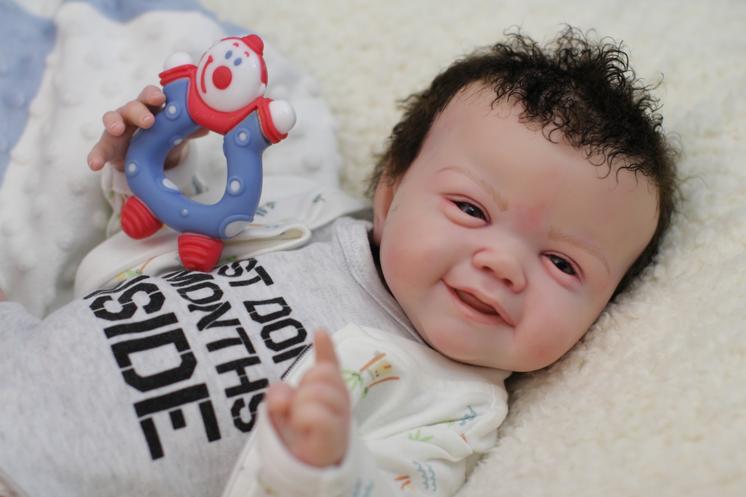 The body is weighted with large glass beads contained with a sack, then filled out with quality polyfill making the baby nice and cuddly and feeling like your holding a real baby.