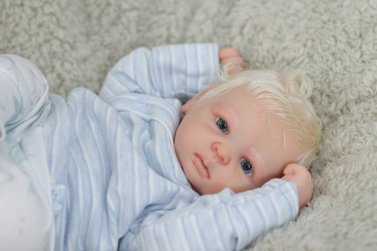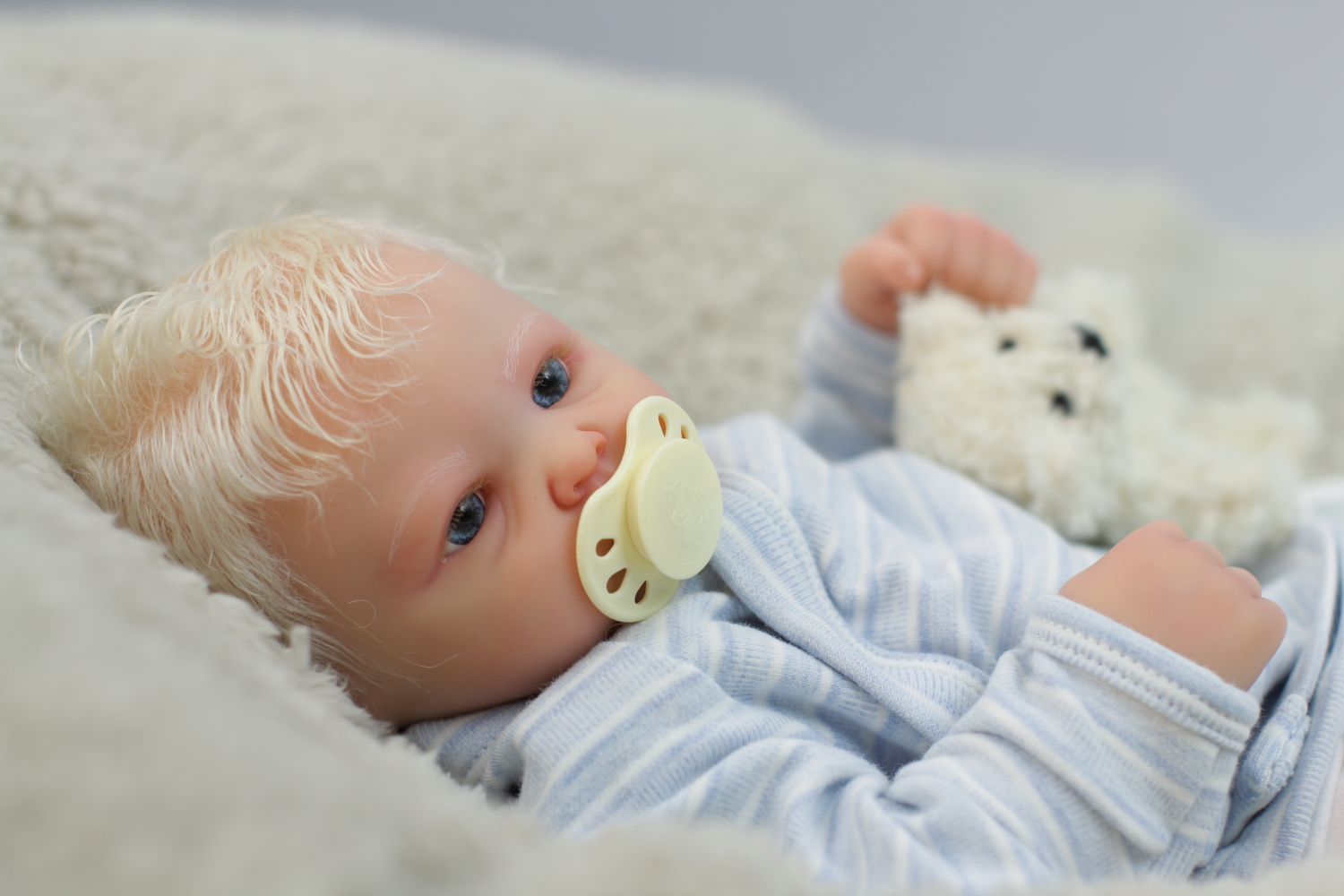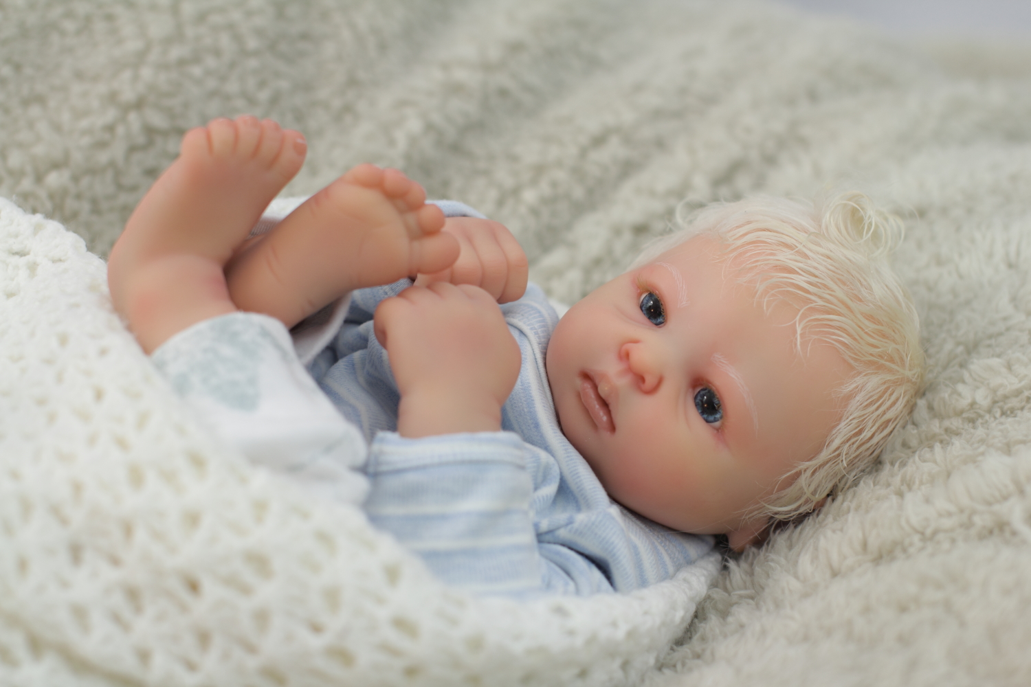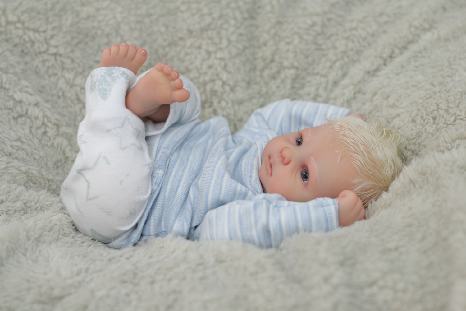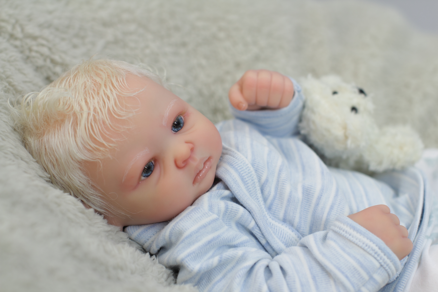 On open eyed babies only high quality polyglass or glass eyes are used, they are specially designed to resemble ultra realistic baby eyes in every detail.