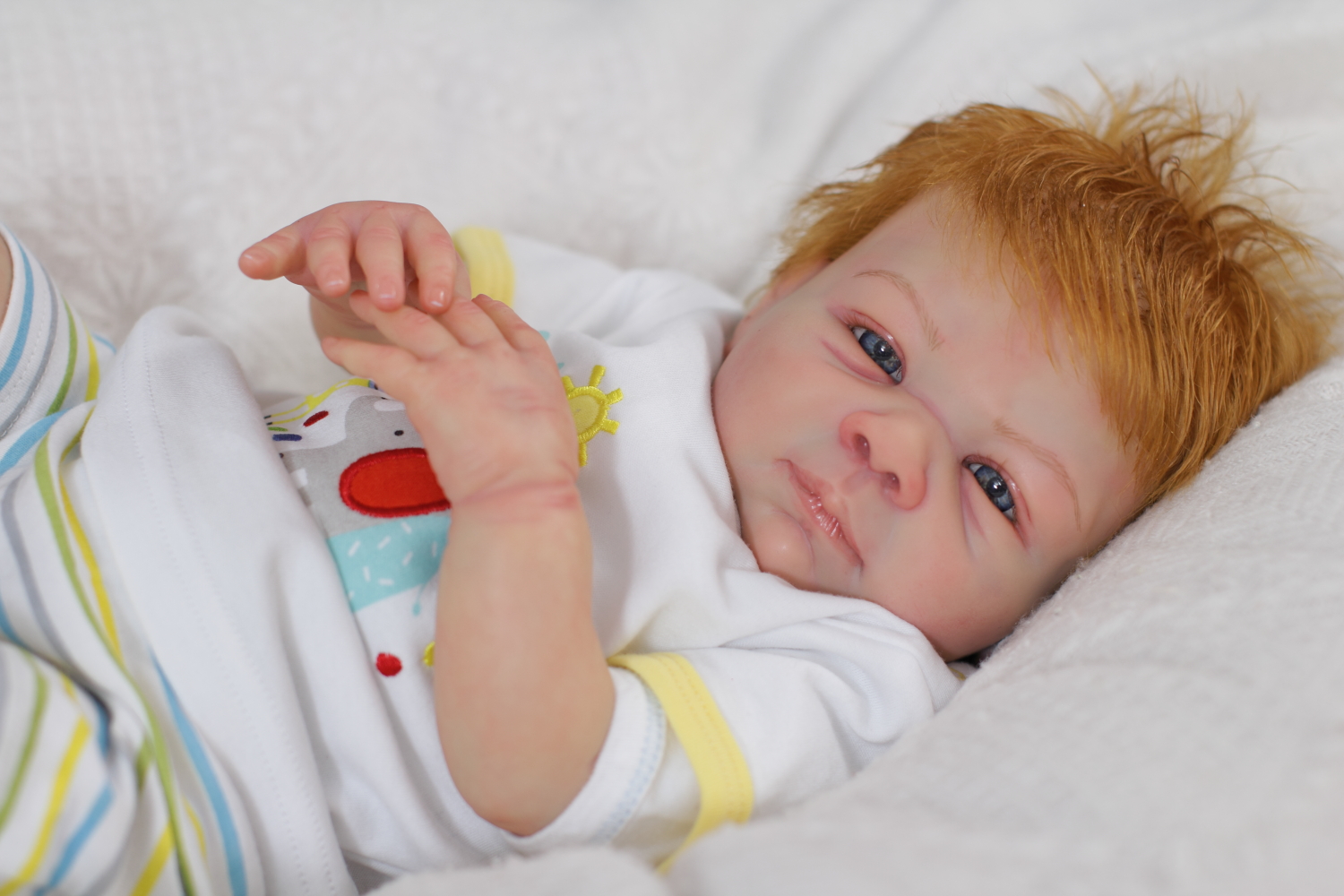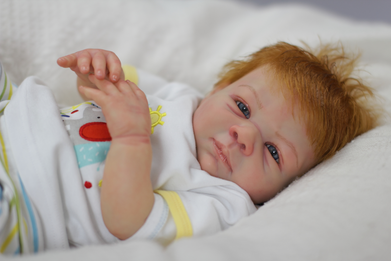On open eyed babies only high quality polyglass or glass eyes are used, they are specially designed to resemble ultra realistic baby eyes in every detail.