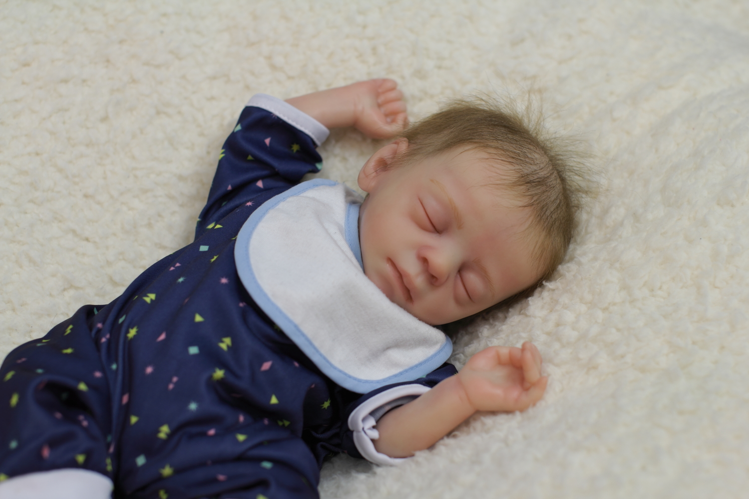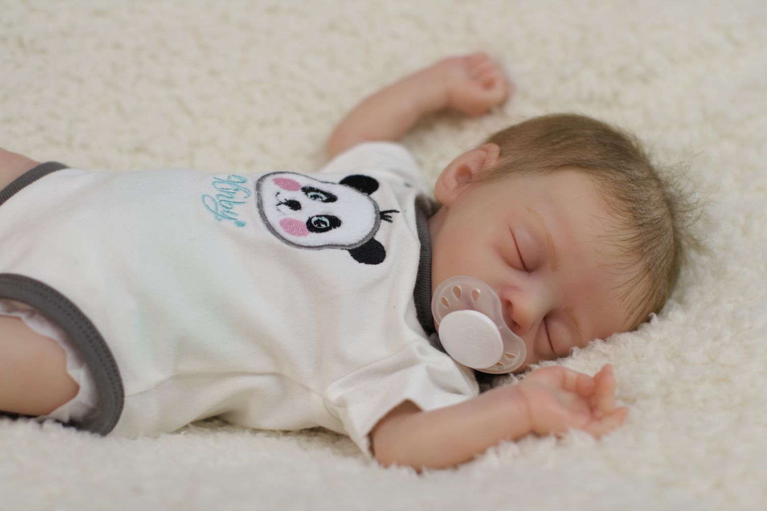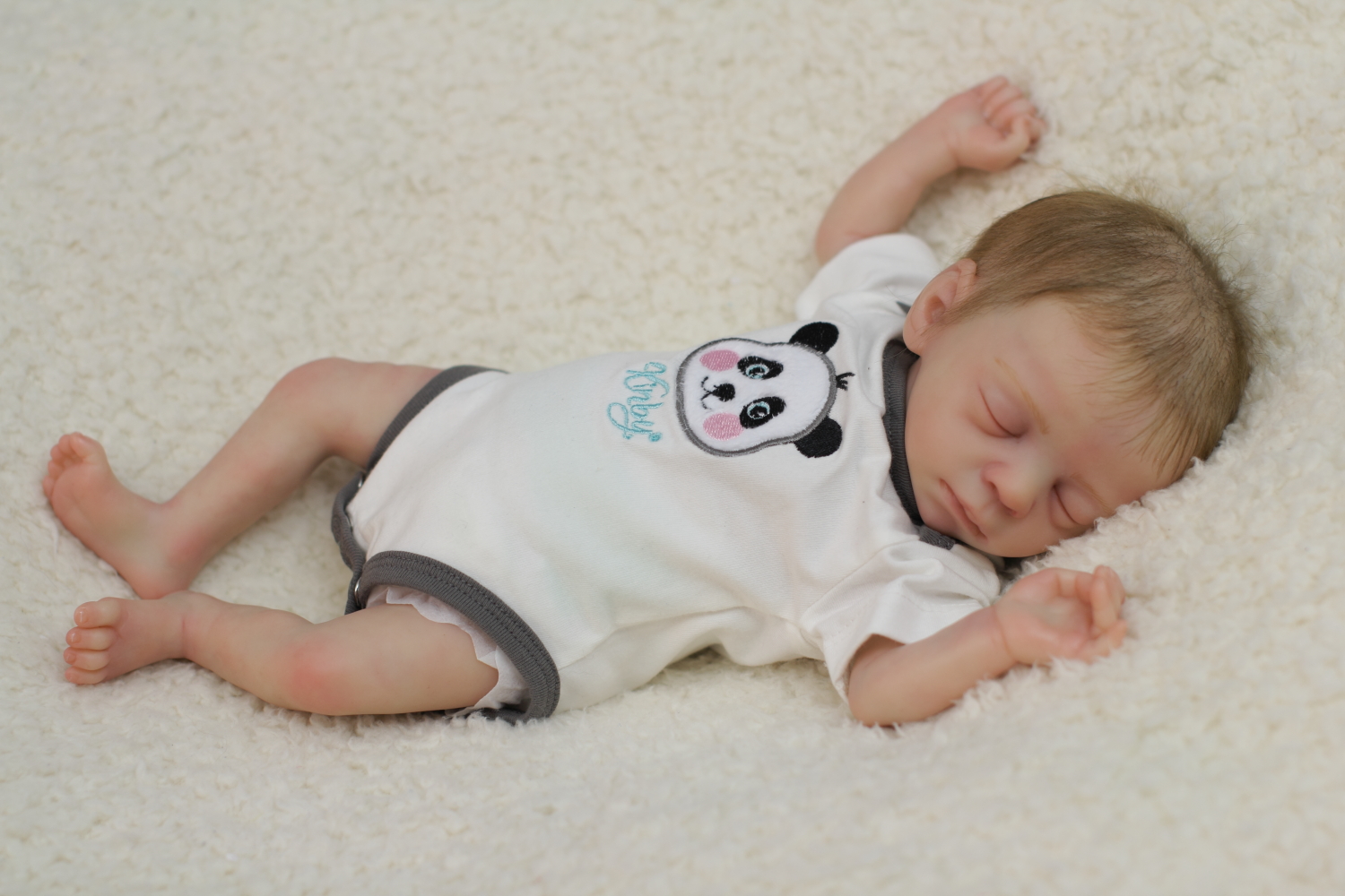 On open eyed babies only high quality polyglass or glass eyes are used, they are specially designed to resemble ultra realistic baby eyes in every detail.