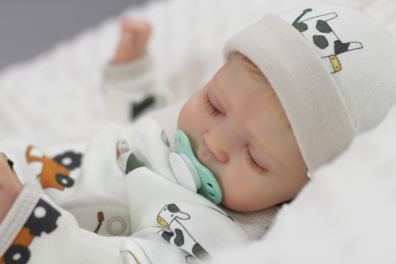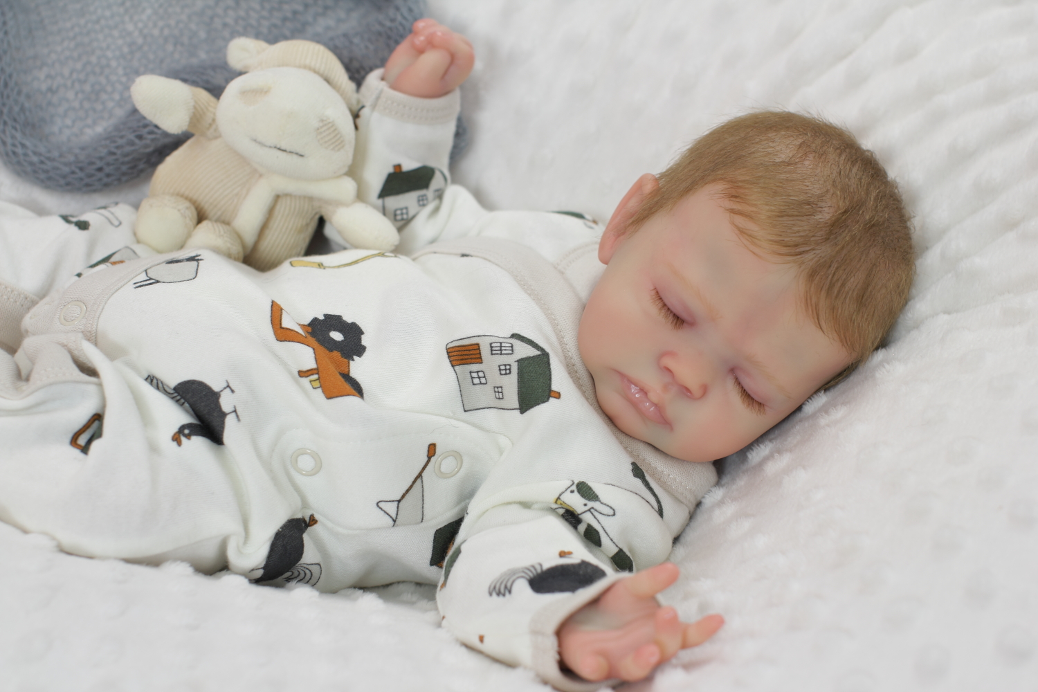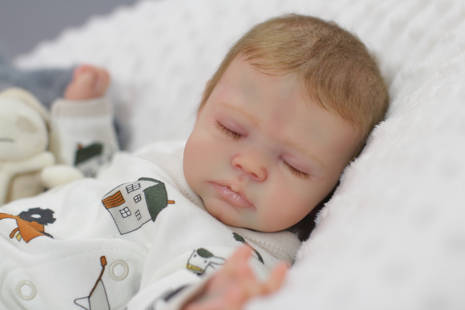 On open eyed babies only high quality polyglass or glass eyes are used, they are specially designed to resemble ultra realistic baby eyes in every detail.