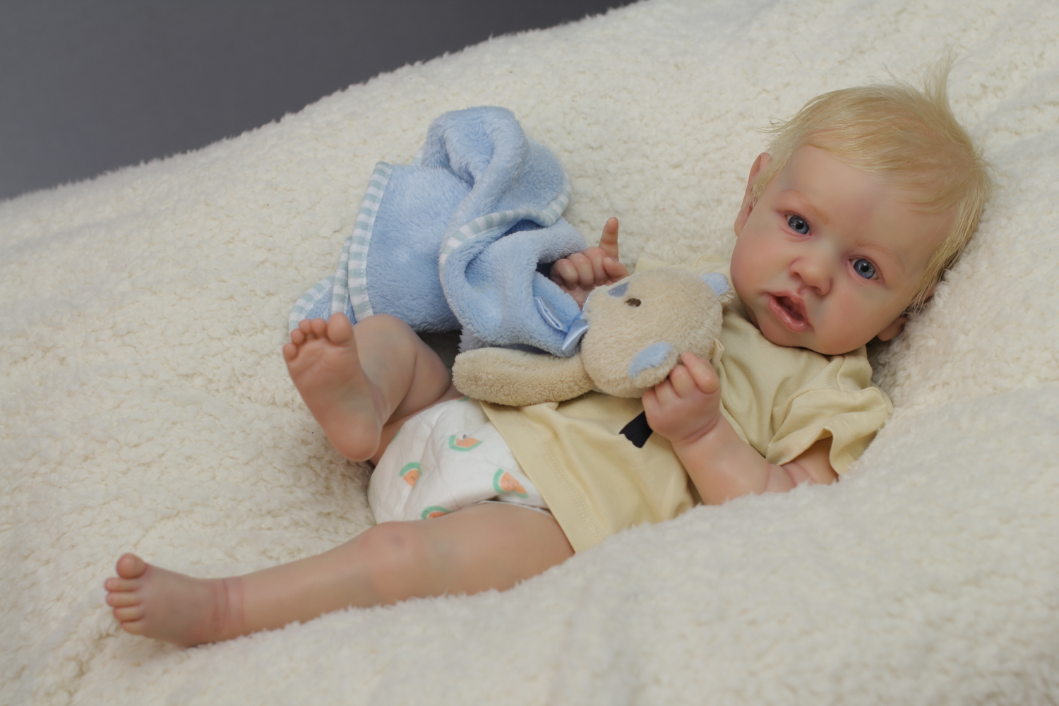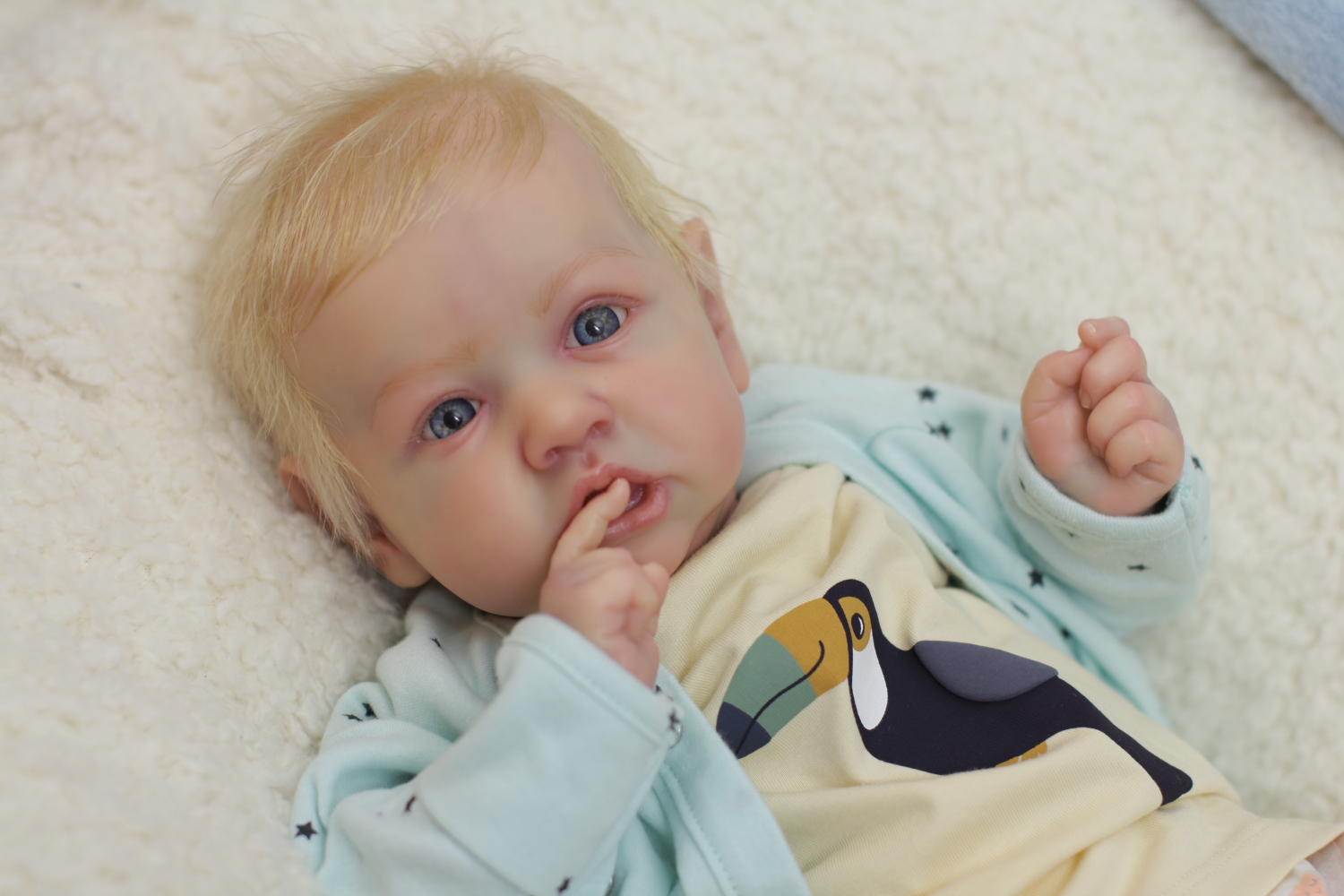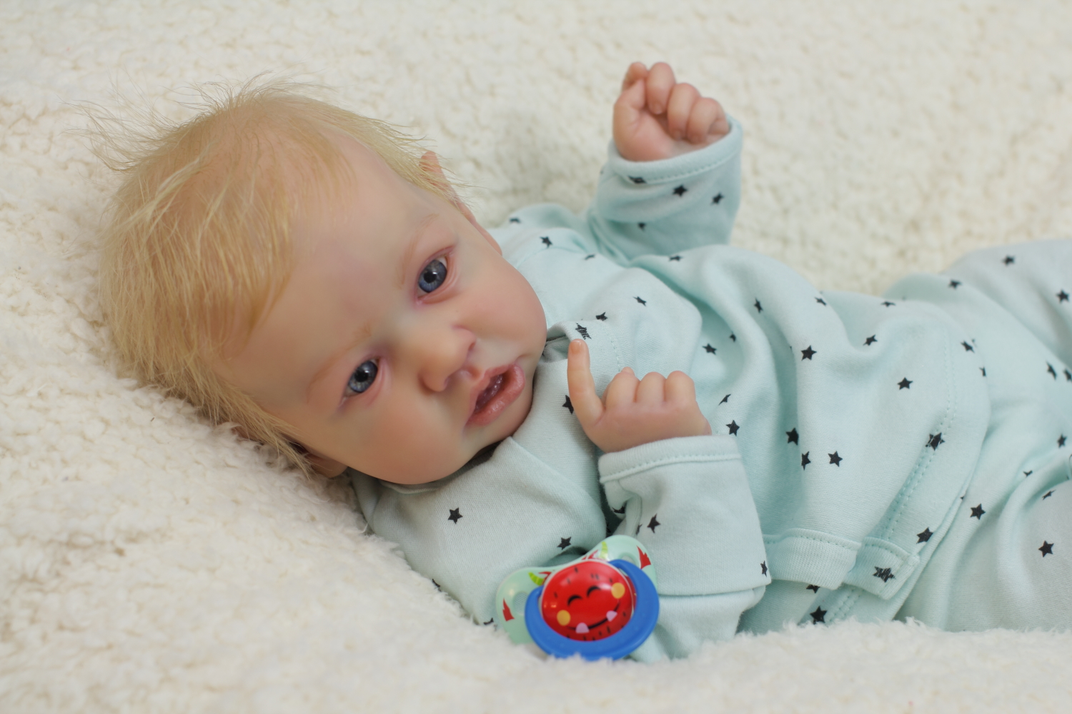 On open eyed babies only high quality polyglass or glass eyes are used, they are specially designed to resemble ultra realistic baby eyes in every detail.