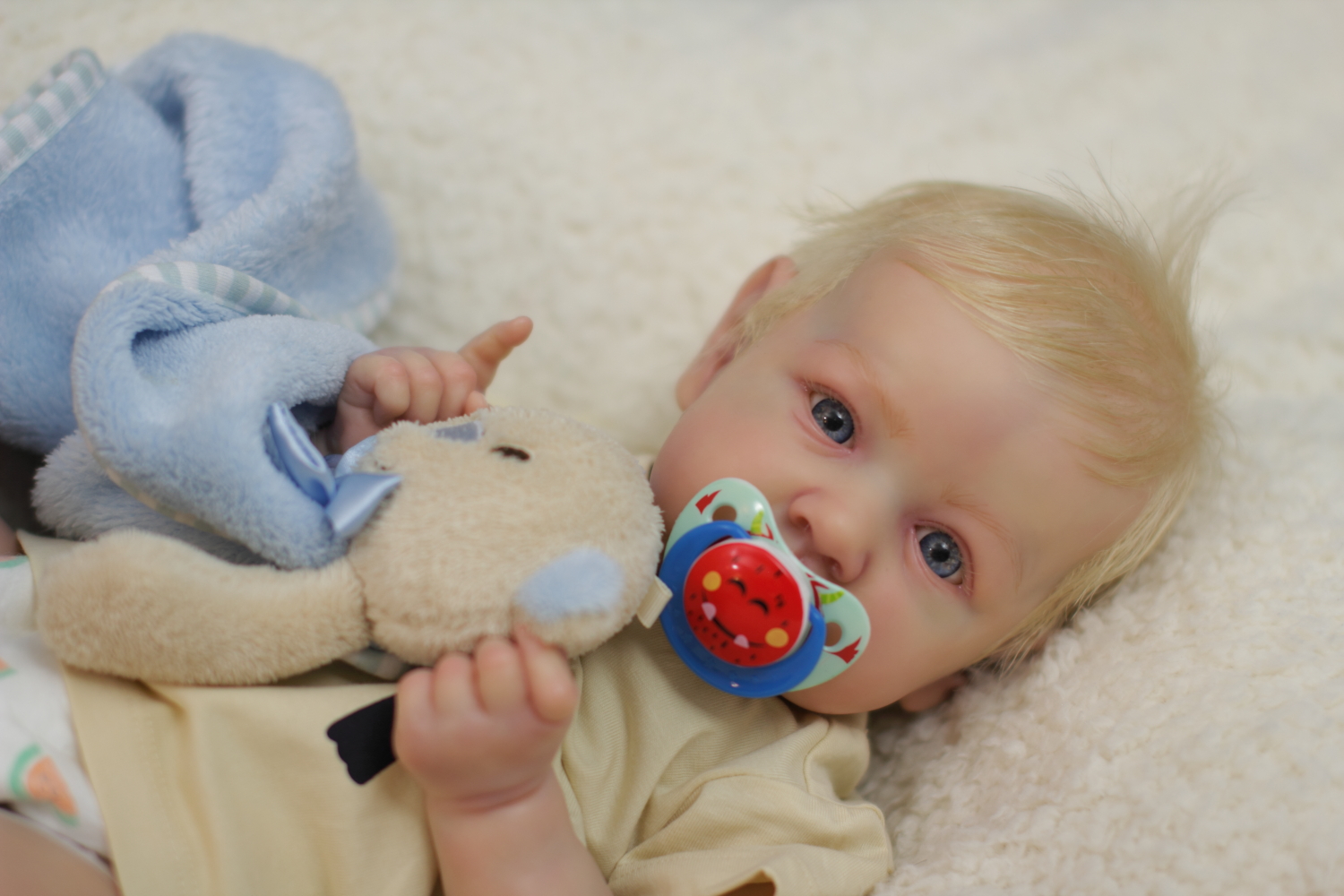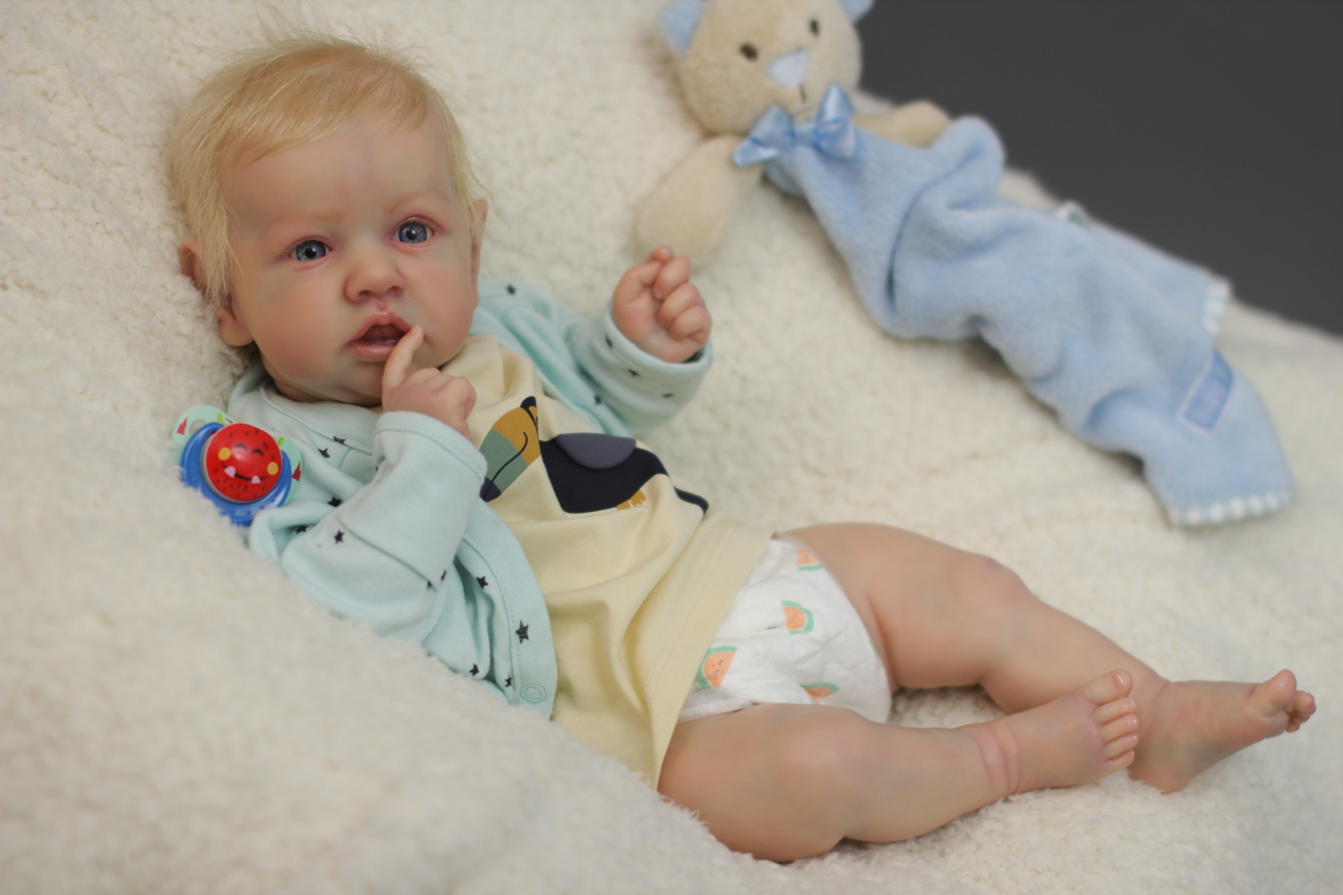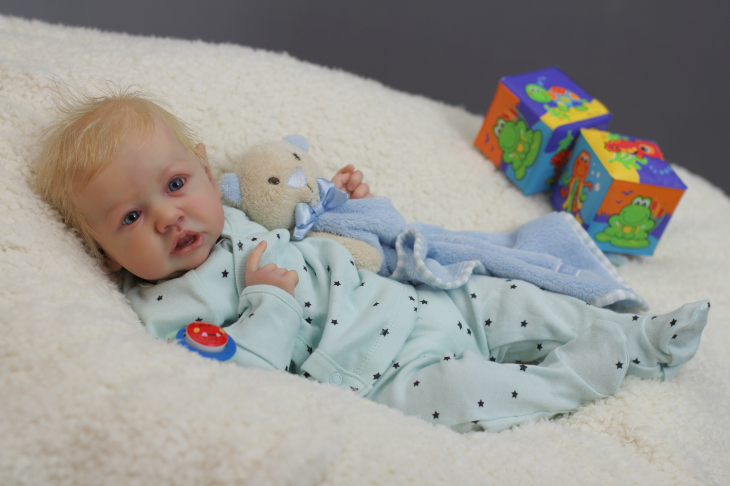 On open eyed babies only high quality polyglass or glass eyes are used, they are specially designed to resemble ultra realistic baby eyes in every detail.