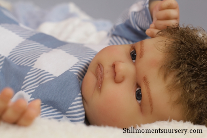 On open eyed babies only high quality polyglass or glass eyes are used, they are specially designed to resemble ultra realistic baby eyes in every detail.