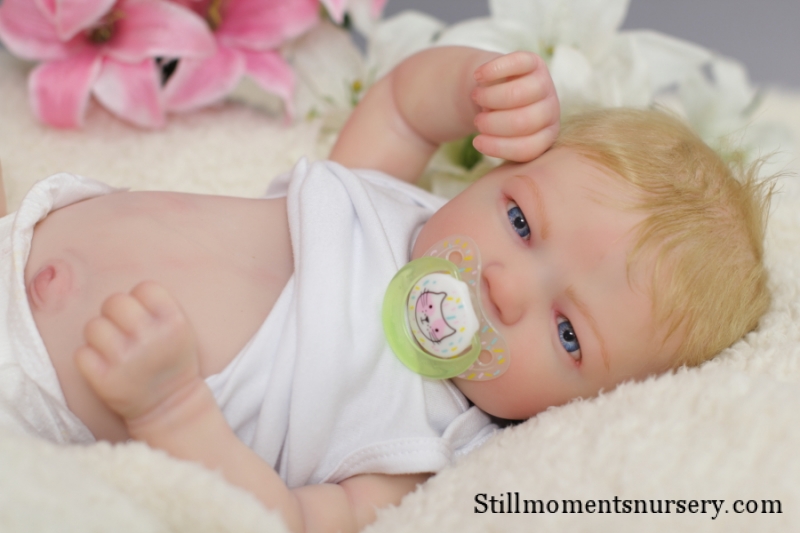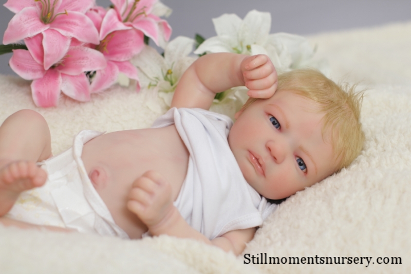 On open eyed babies only high quality polyglass or glass eyes are used, they are specially designed to resemble ultra realistic baby eyes in every detail.