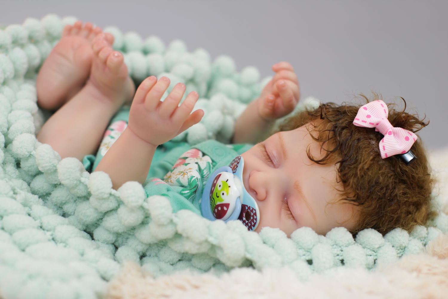 On open eyed babies only high quality polyglass or glass eyes are used, they are specially designed to resemble ultra realistic baby eyes in every detail.