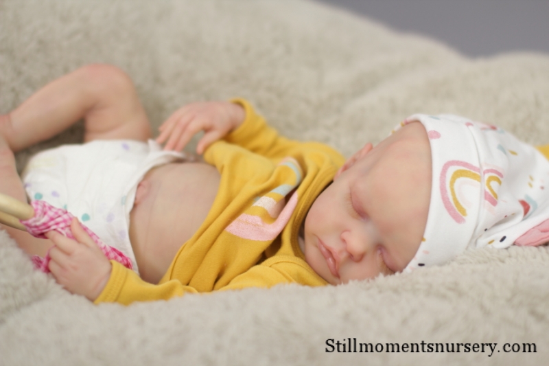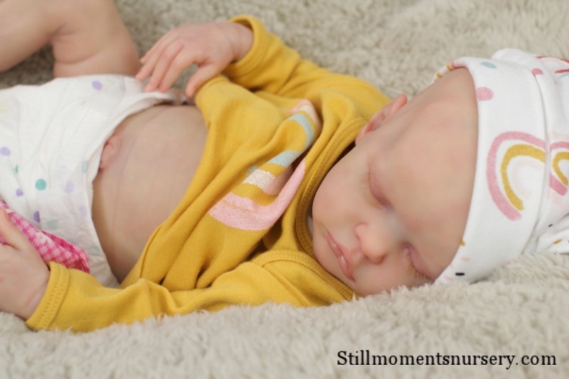 The body is weighted with large glass beads contained with a sack, then filled out with quality polyfill making the baby nice and cuddly and feeling like your holding a real baby.