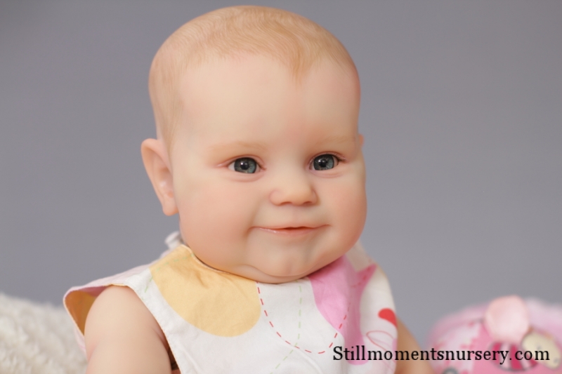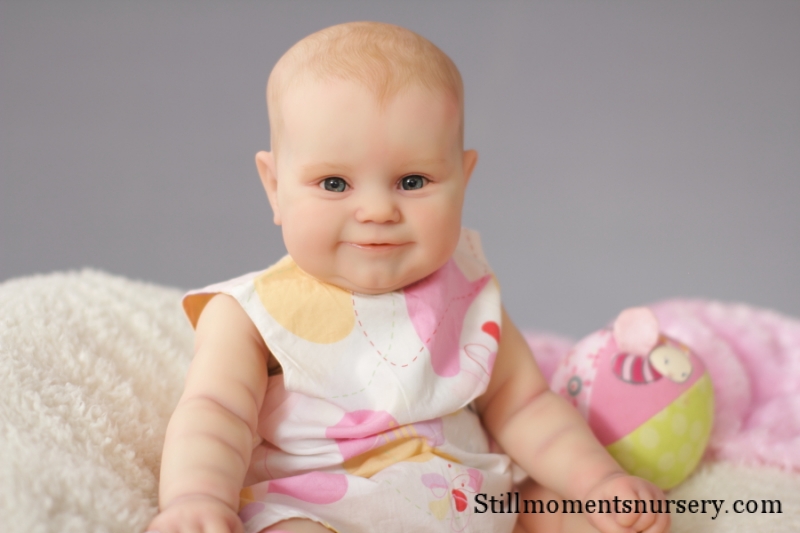 The body is weighted with large glass beads contained with a sack, then filled out with quality polyfill making the baby nice and cuddly and feeling like your holding a real baby.