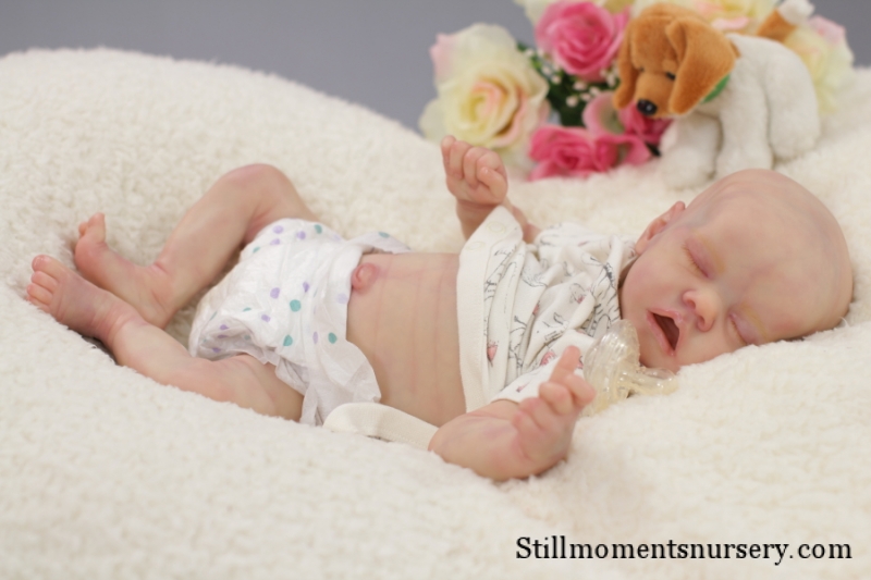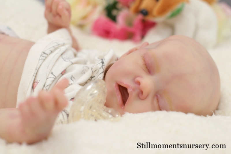 On open eyed babies only high quality polyglass or glass eyes are used, they are specially designed to resemble ultra realistic baby eyes in every detail.