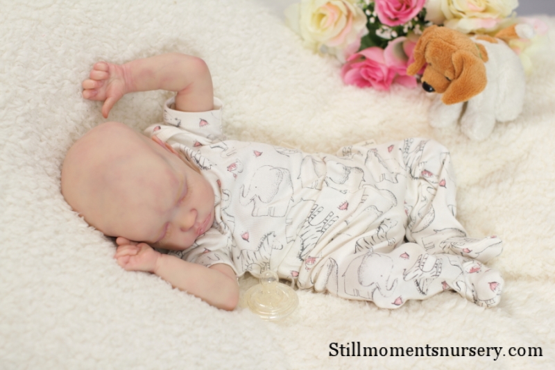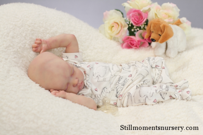 The body is weighted with large glass beads contained with a sack, then filled out with quality polyfill making the baby nice and cuddly and feeling like your holding a real baby.