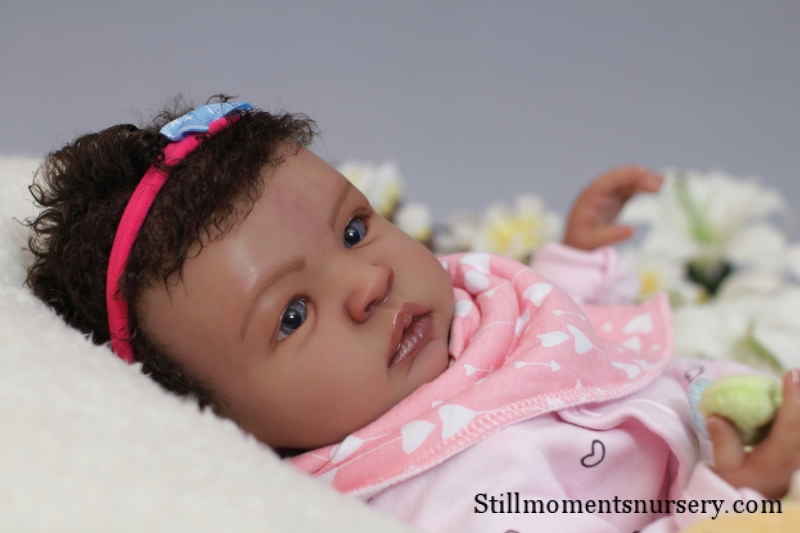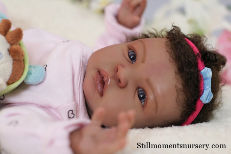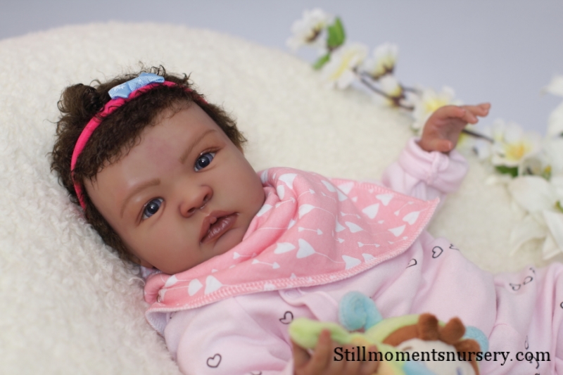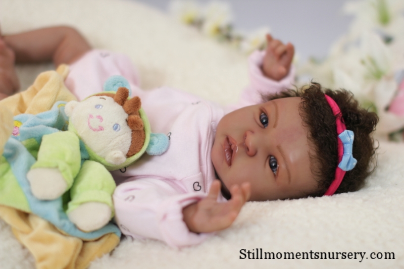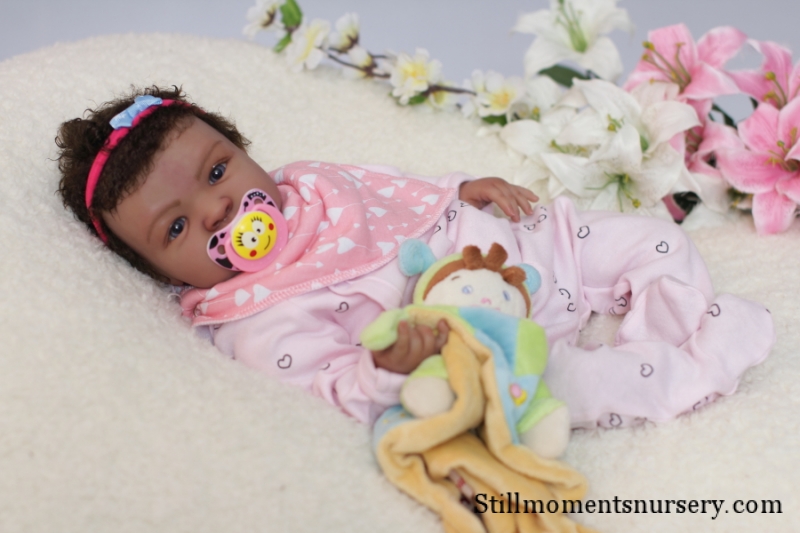 The body is weighted with large glass beads contained with a sack, then filled out with quality polyfill making the baby nice and cuddly and feeling like your holding a real baby.