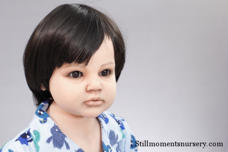 The body is weighted with large glass beads contained with a sack, then filled out with quality polyfill making the baby nice and cuddly and feeling like your holding a real baby.