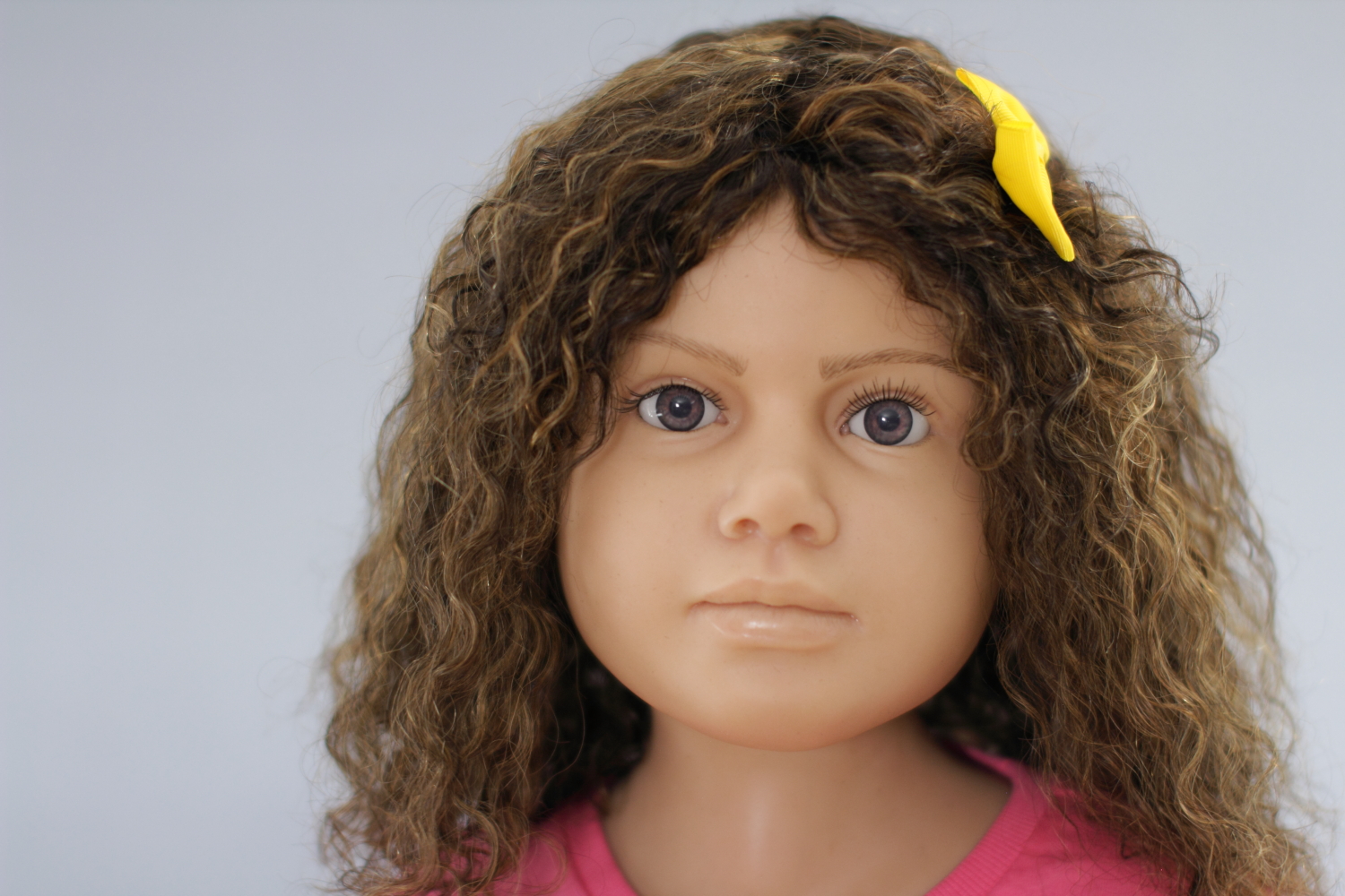 Painted hair on the baby is done all by hand, strand by strand using Real effects air dry paints.