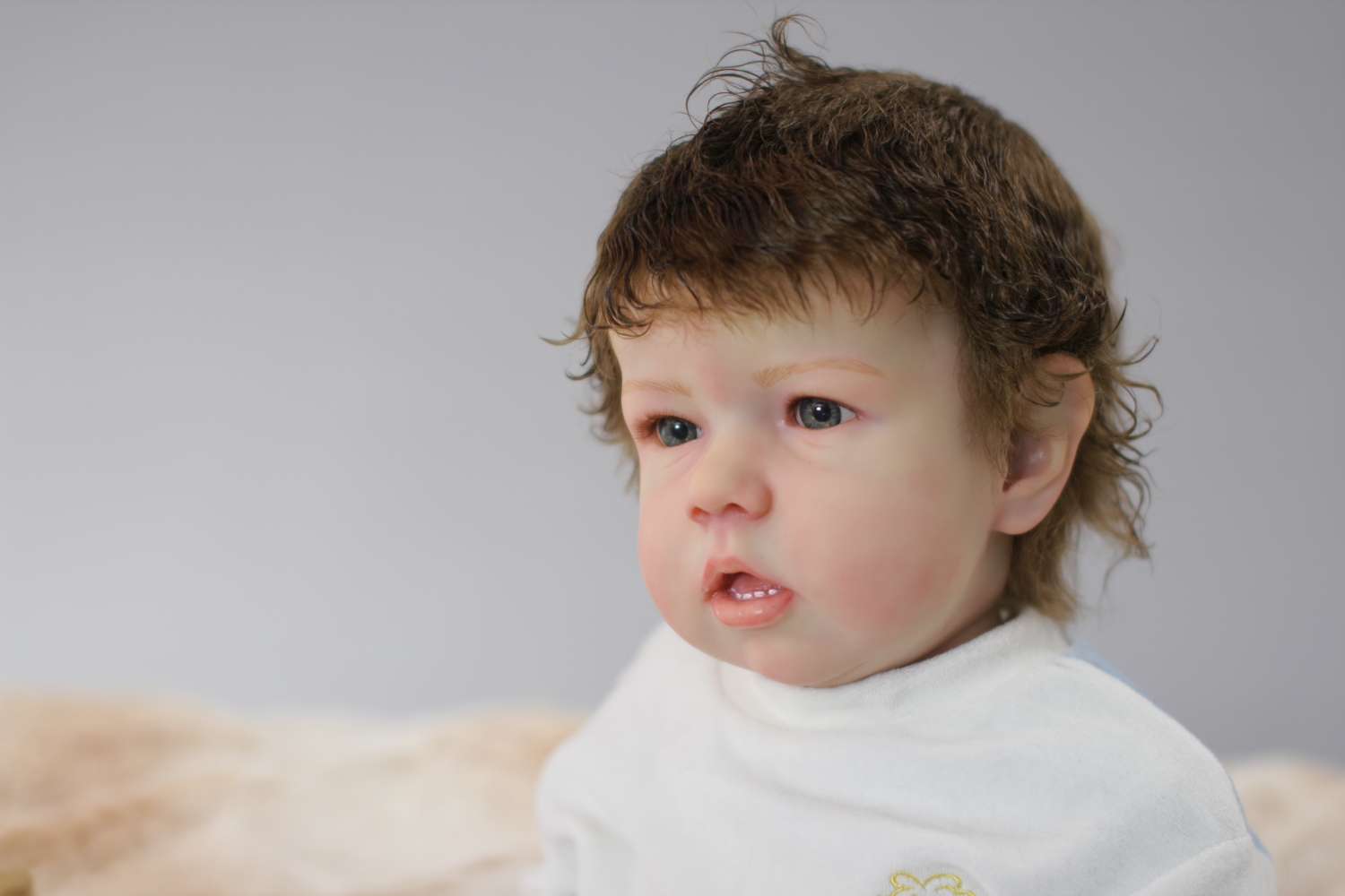 On open eyed babies only high quality polyglass or glass eyes are used, they are specially designed to resemble ultra realistic baby eyes in every detail.