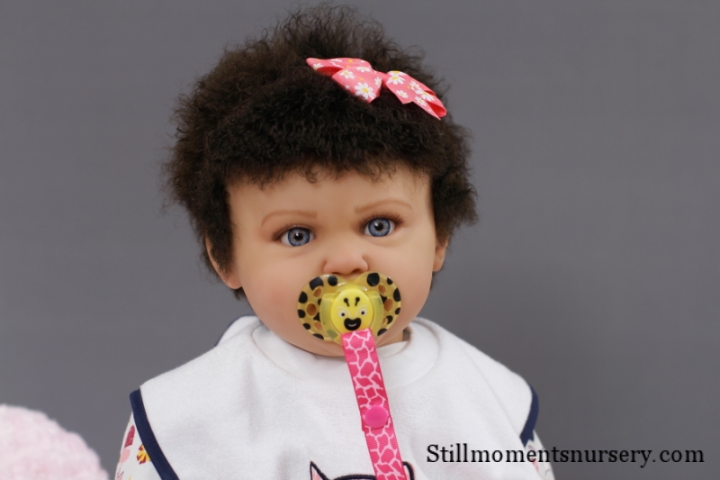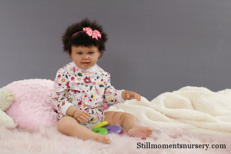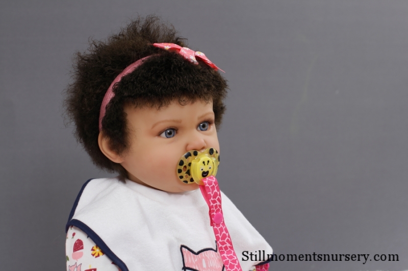 The body is weighted with large glass beads contained with a sack, then filled out with quality polyfill making the baby nice and cuddly and feeling like your holding a real baby.