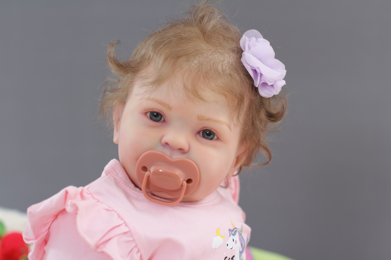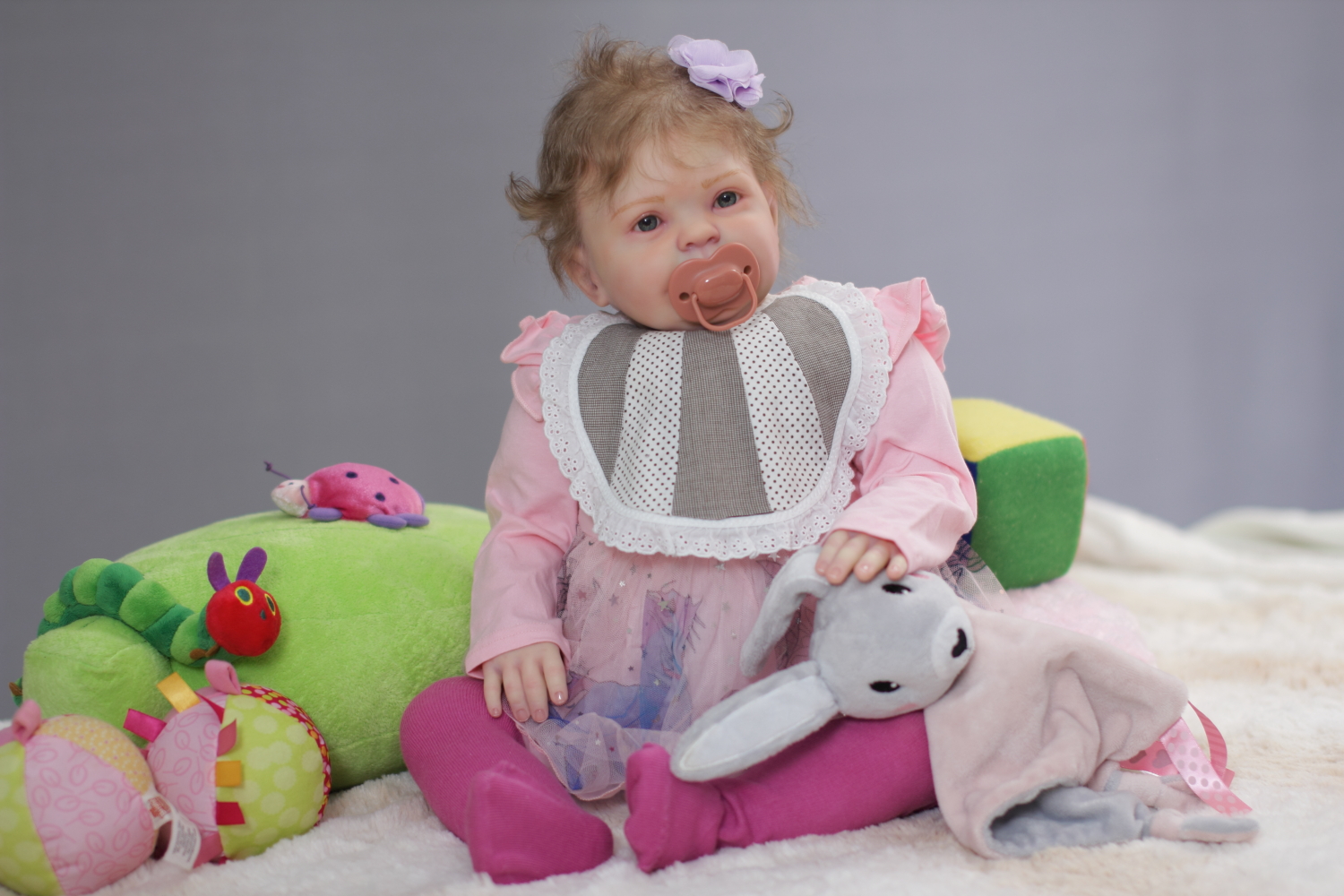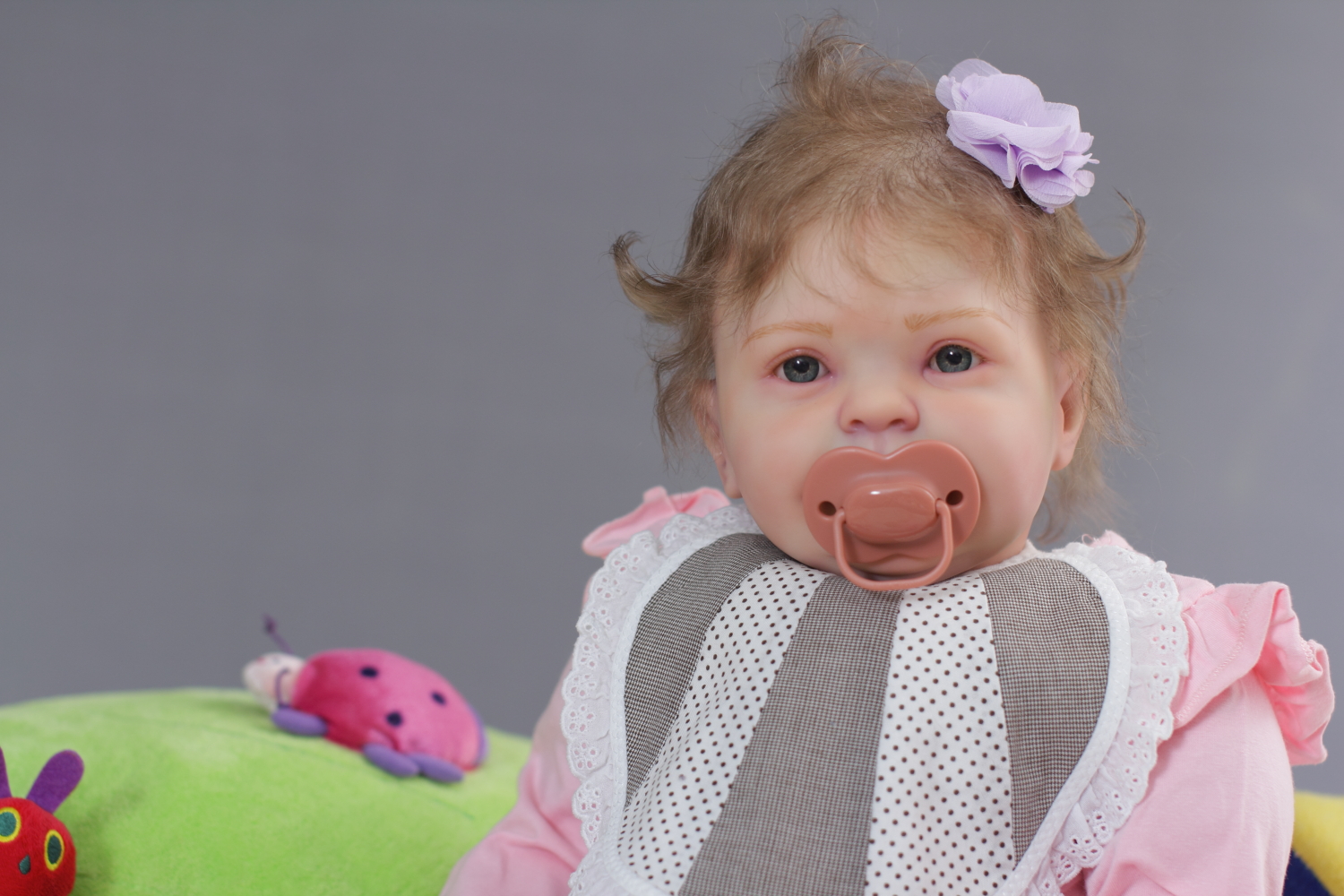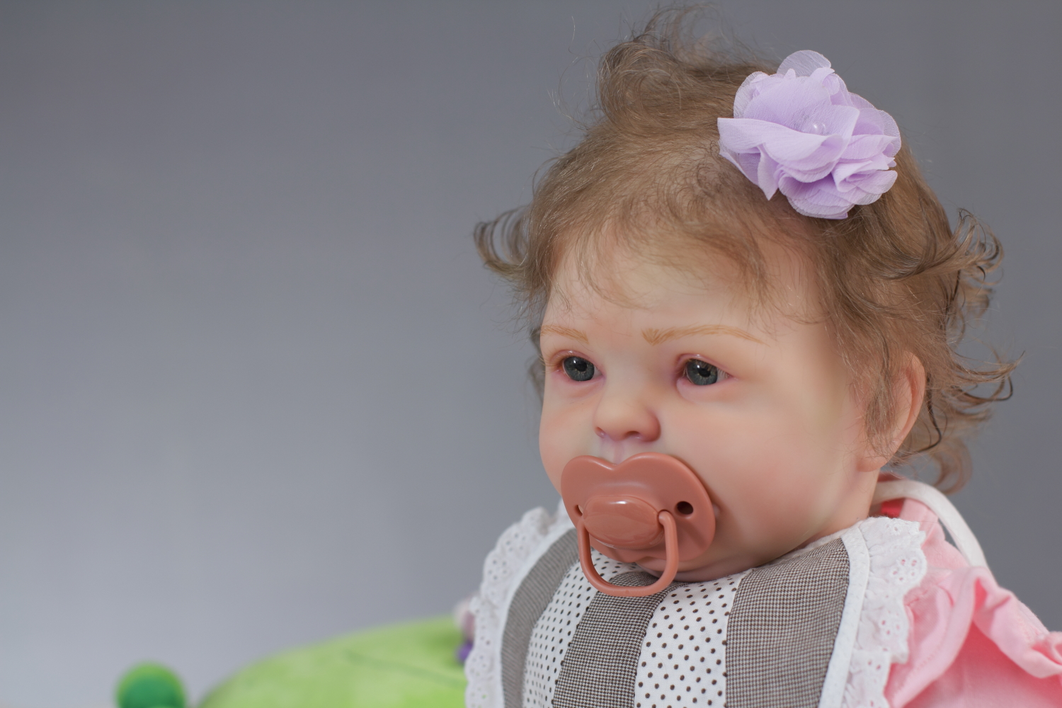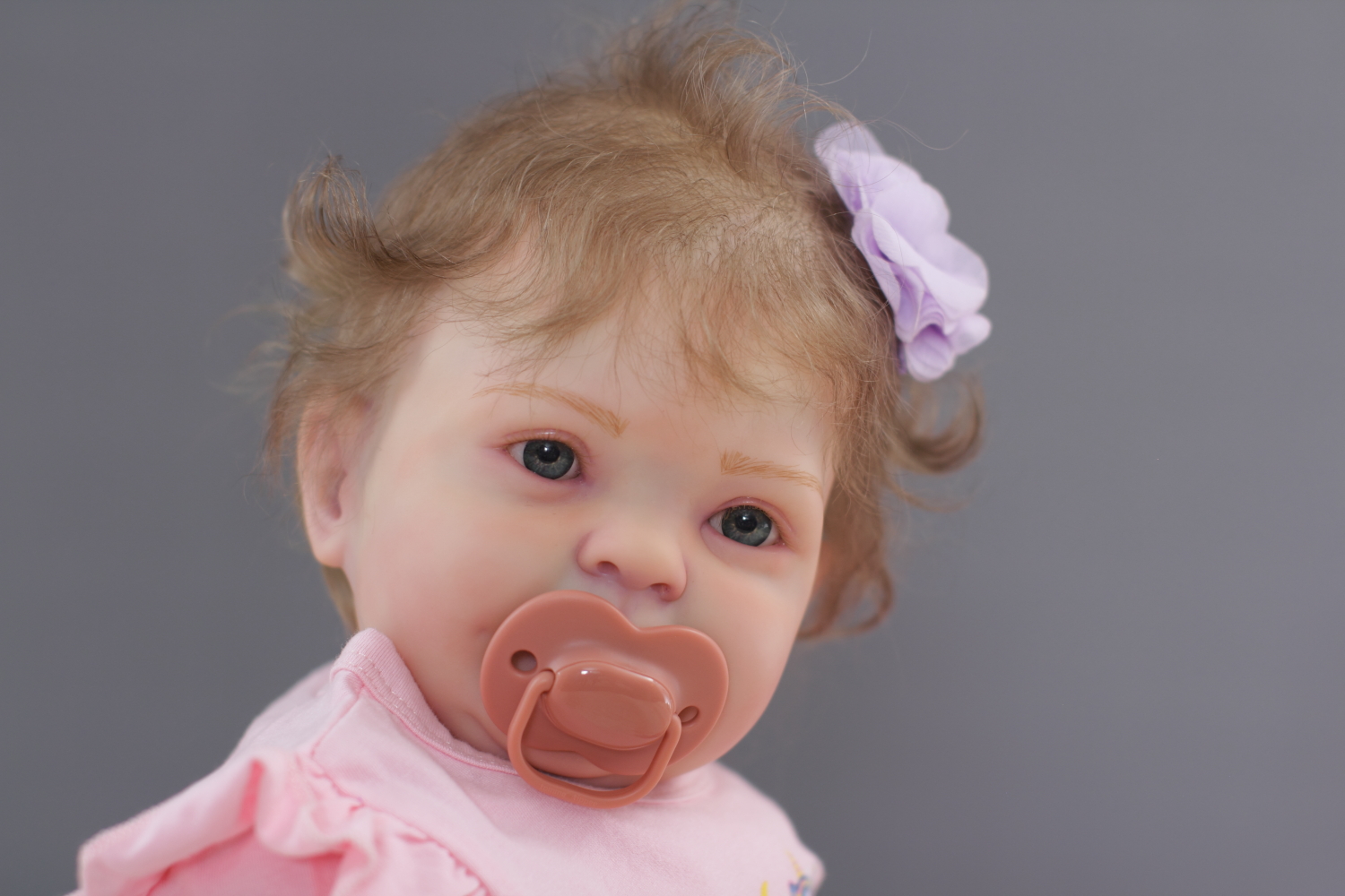 The body is weighted with large glass beads contained with a sack, then filled out with quality polyfill making the baby nice and cuddly and feeling like your holding a real baby.