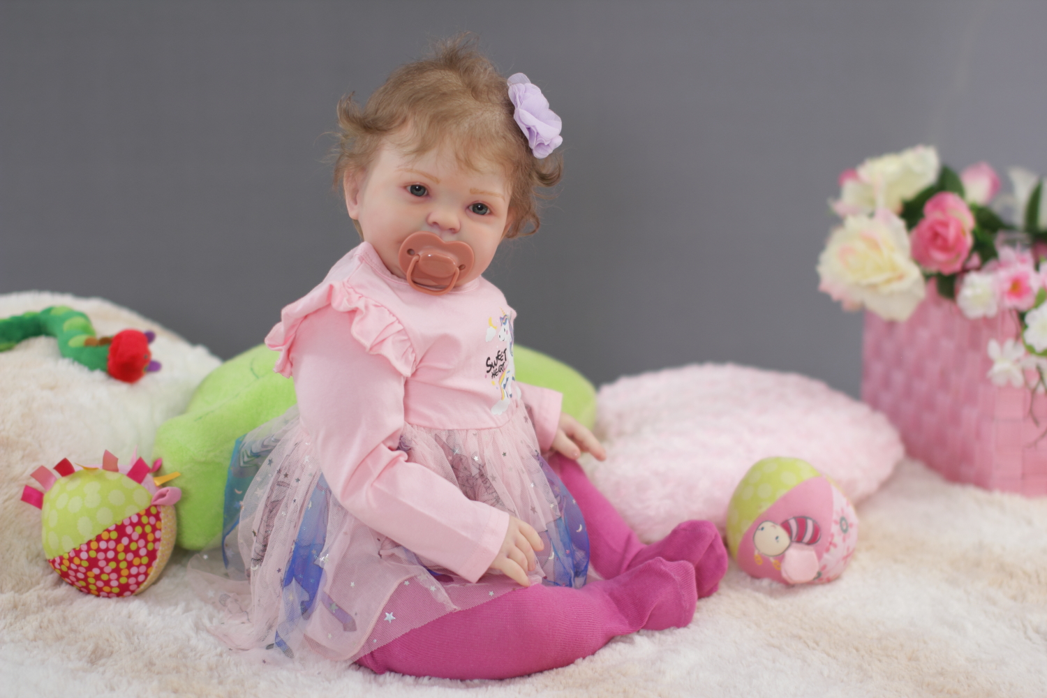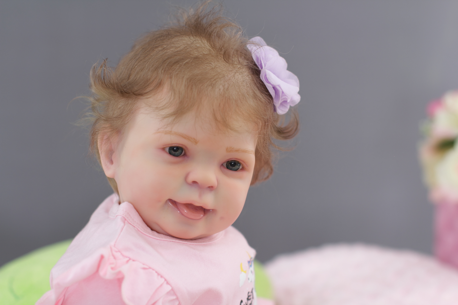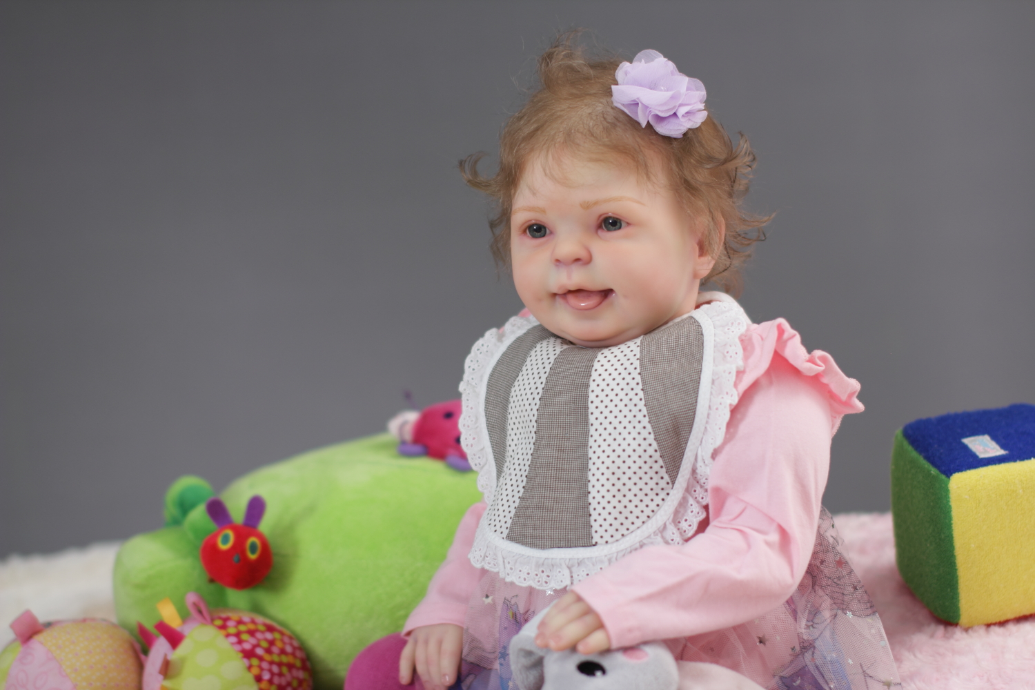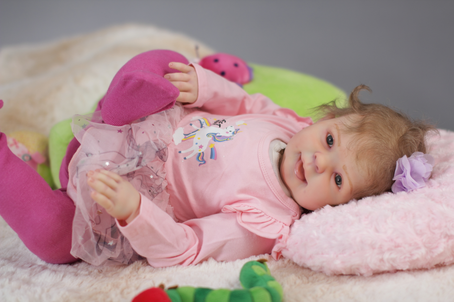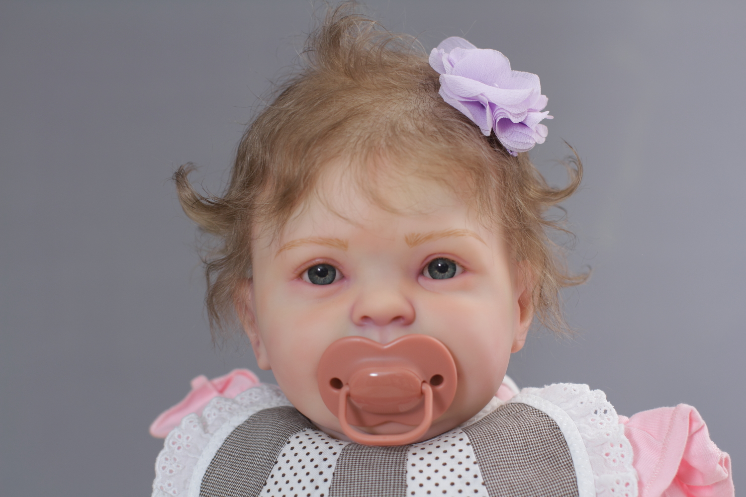 The body is weighted with large glass beads contained with a sack, then filled out with quality polyfill making the baby nice and cuddly and feeling like your holding a real baby.