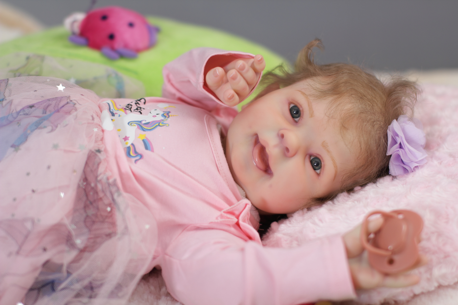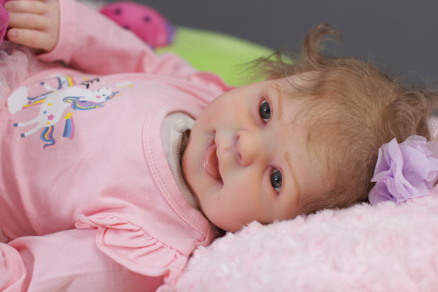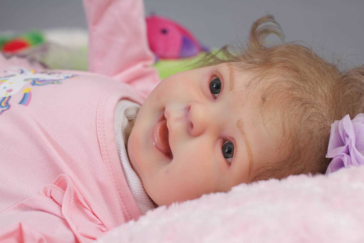 On open eyed babies only high quality polyglass or glass eyes are used, they are specially designed to resemble ultra realistic baby eyes in every detail.